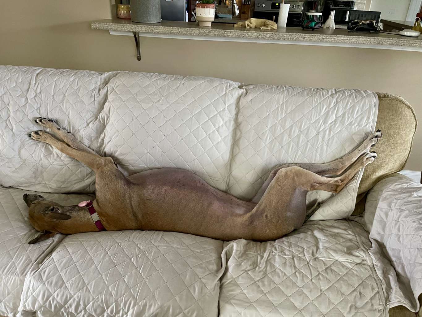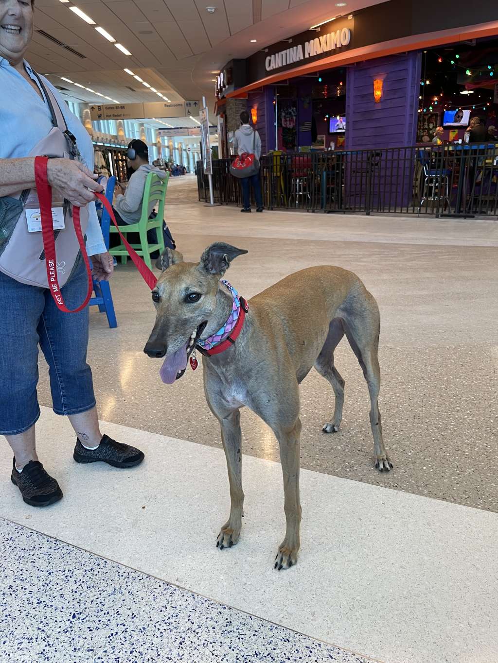 Meet Yana, a retired racer from West Virginia now living her best life here at the beach. She is equal parts goofy and cuddly. She loves her toys and being lazy on the couch. Yana is a foodie. She loves her snacks and has a special place for her Pup-Peroni treats. Her favorite activity is working as a Therapy dog and meeting as many new friends as she can. And after a long day "at work", deserves a long nap laying upside down on the couch. Yana makes everyday a fun adventure.